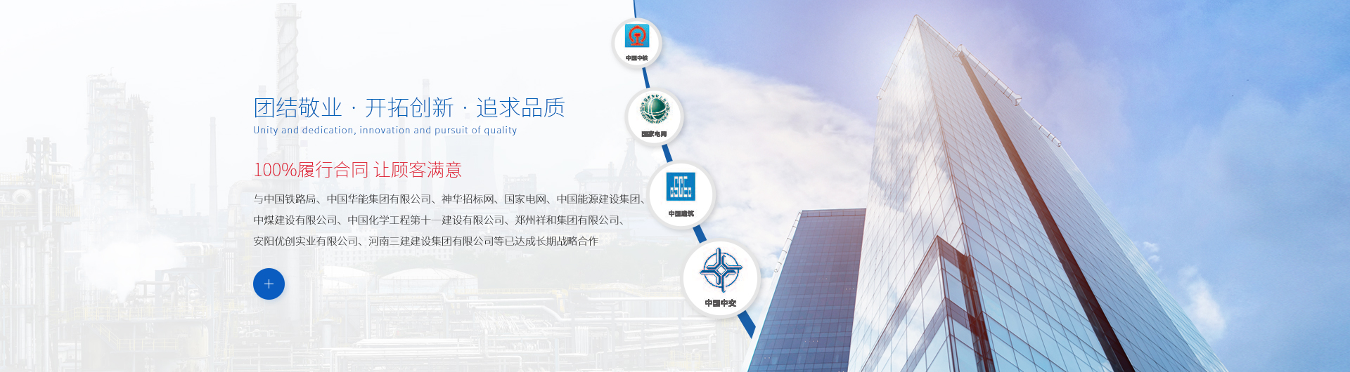 • 公司與中鐵大橋局、中鐵電氣化局、中鐵北京工程局、中鐵七局、中鐵五局、中建鐵投、中建三局、中建五局、中建八局、中國通號、中國電建、中國能建、中國五礦、中化建、中煤建、二化建、六化建、十一化建、陜西建工、國家電網、國家電投、中國華能、中國華電、河南三建、鄭州祥和、安陽優創、華潤電力、大唐電力、神華集團、同煤集團、中核二二、中核二三、中石油、中海油、中石化、等已達成長期戰略合作。公司在河南、河北、山東、山西、四川、江西、內蒙、新疆、江蘇、安徽、湖北、天津、北京、陜西、重慶等省市公共資源交易中心已備案,在國家各大招投標網站已注冊。